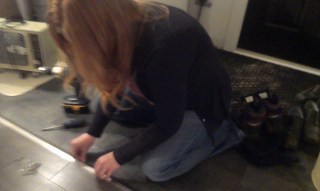 After every tile, I did a little bow-legged dance to really press it down and secure it to the floor.  The instructions said to use a 100lb roller and since I’m just a smidge over 100 pounds (shut it) I figured sliding around on it would do the trick just as well.