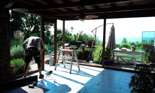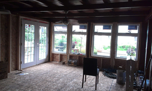 I had the floor raised about 4 inches so that it would be the same height as the house, rebuilt the walls, put in new windows and a set of double french doors.