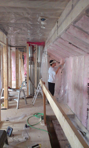 Next, it was time to address that dang ol’ OSB floor.  For those of you not familiar, OSB stands for oriented strand board.  It’s basically a process by which various strands or flakes of boards are glued together and kiln-dried.  It results in an affordable and strong product that is most commonly used as flooring, walls and in the construction of roofs.  It might be strong, but it sure ain’t pretty.  Time to cover it up.