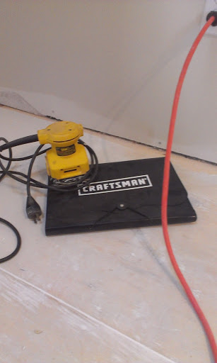 I took my trusty palm sander and 100 grit sandpaper and got to work.