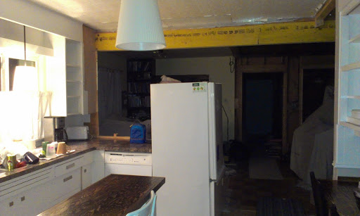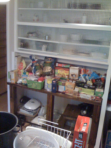 And then we tore the wall of cabinetry down in order to expand the kitchen. So, everything in those cabinets got relegated to the basement, along with the contents of the pantry.